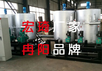 磷酸鹽加藥裝置主要包括藥液溶配系統(tǒng)、計量投加系統(tǒng)、安全系統(tǒng)和控制系統(tǒng)等四部分。固體磷酸鹽加入溶藥箱內(nèi),然后按比例加入除鹽水或凝結(jié)水攪拌溶解,由計量投加系統(tǒng)加到鍋爐汽包內(nèi)。投加控制可采用手動方式,也可依據(jù)上位系統(tǒng)輸出的控制信號,進行隨動控制,自動投加。